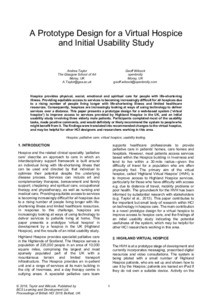 A Prototype Design for a Virtual Hospice and Initial Usability StudyTaylor, Andrea and Wilcock, Geoff (2018) A Prototype Design for a Virtual Hospice and Initial Usability Study. In: British HCI 2018, 2-6 July 2018, Belfast, Northern Ireland. |