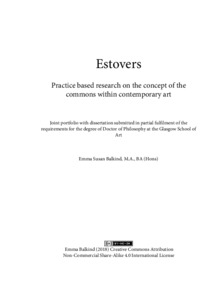 Estovers: Practice based research on the concept of the commons within contemporary artBalkind, Emma (2018) Estovers: Practice based research on the concept of the commons within contemporary art. PhD thesis, The Glasgow School of Art. |