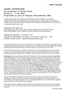 Cabinet InterventionsBrind, Susan, McMullan, Shauna and Peace, Joanna (2018) Cabinet Interventions. Pollok House, Pollok Country Park, Glasgow, 20 April - 7 May 2018 [Show/Exhibition] |