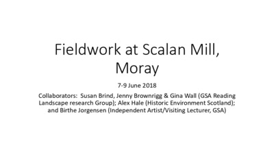 Inter-disciplinary Fieldwork at Scalan Mills, MorayBrind, Susan, Brownrigg, Jenny, Wall, Gina, Hale, Alex and Jorgensen, Birthe (2018) Inter-disciplinary Fieldwork at Scalan Mills, Moray. [Experiment] |