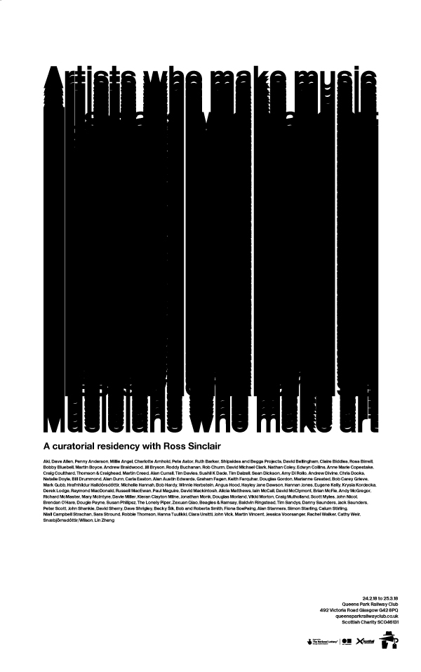 Artists who make Music/Musicians who make ArtŠik, Becky, Sinclair, Ross, Railway Club, Queens Park and Artists, Various (2018) Artists who make Music/Musicians who make Art. Queens Park Railway Club, 24 February – 25 March 2018 [Show/Exhibition] |