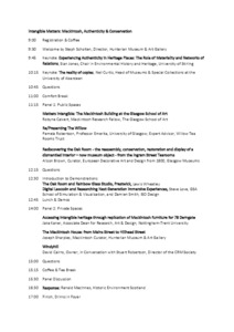 Intangible Matters: Mackintosh, Authenticity and ConservationCalvert, Robyne (2018) Intangible Matters: Mackintosh, Authenticity and Conservation. In: Intangible Matters: Mackintosh, Authenticity and Conservation, 19-20 October 2018, Kelvinhall, University of Glasgow. |