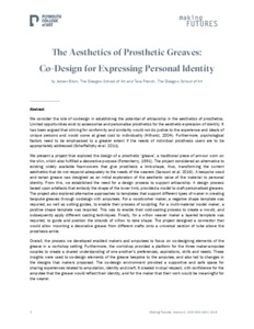 The Aesthetics of Prosthetic Greaves: Co-Design for Expressing Personal IdentityBlom, Jeroen and French, Tara (2018) The Aesthetics of Prosthetic Greaves: Co-Design for Expressing Personal Identity. Making Futures, 5. ISSN 2042-1664 |