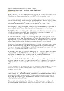 Anderson, Deborah and Evans, Brian (2021) We have the opportunity to reconfigure the beating heart of Glasgow – Interview by Deborah Anderson with Brian Evans. The Herald Newspaper. ISSN 0965-9439
