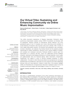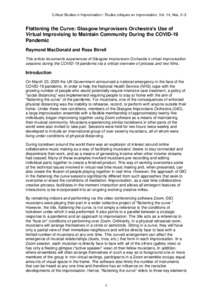 Birrell, Ross and MacDonald, Raymond (2021) Flattening the Curve: Glasgow Improvisers Orchestra’s Use of Virtual Improvising to Maintain Community During the COVID-19 Pandemic. Critical Studies in Improvisation / Études critiques en improvisation, 14 (2-3). ISSN 1712-0624