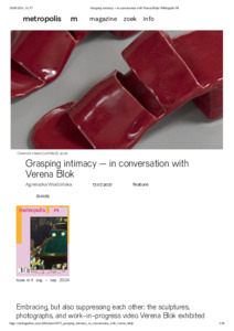 Wodzinska, Agnieszka (2021) Grasping intimacy: in conversation with Verena Blok. metropolis m (4). ISSN 0168-9053