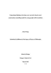 Using design thinking to develop a new narrative-based career construction counselling model for young people in life transitionsWang, Ziwei (2022) Using design thinking to develop a new narrative-based career construction counselling model for young people in life transitions. PhD thesis, The Glasgow School of Art. |