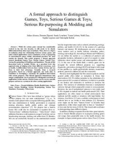 A Formal Approach to Distinguish Games, Toys, Serious Games & Toys, Serious Re-purposing & Modding and SimulatorsAlvarez, Julian, Djaouti, Damien, Louchart, Sandy Jean-Jacques, Lebrun, Yoann, Zary, Nabil, Lepreux, Sophie and Kolski, Christophe (2022) A Formal Approach to Distinguish Games, Toys, Serious Games & Toys, Serious Re-purposing & Modding and Simulators. IEEE Transactions on Games, 15 (3). pp. 399-410. ISSN 2475-1502 |