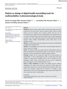 Patient co-design of digital health storytelling tools for multimorbidity: A phenomenological studyCummings, Marissa, Bradley, Jay and Teal, Gemma (2022) Patient co-design of digital health storytelling tools for multimorbidity: A phenomenological study. Health Expectations, 25 (6). pp. 3073-3084. ISSN 1369-7625 |