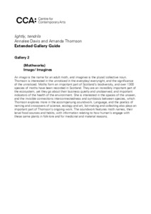 Lightly, TendrilsThomson, Amanda (2022) Lightly, Tendrils. Centre for Contemporary Arts, Glasgow, 9th April - 21st May 2022 [Show/Exhibition] |