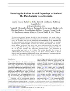 Revealing the Earliest Animal Engravings in Scotland: The Dunchraigaig Deer, KilmartinValdez-Tullett, Joana, Barnett, Tertia, Robin, Guillaume and Jeffrey, Stuart (2022) Revealing the Earliest Animal Engravings in Scotland: The Dunchraigaig Deer, Kilmartin. Cambridge Archaeological Journal, 33 (2). pp. 281-307. ISSN 0959-7743 |
