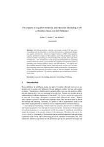 The Impacts of Design Elements in Interactive Storytelling in VR on Emotion, Mood, and Self-reflectionWolfe, Austin, Louchart, Sandy Jean-Jacques and Loranger, Brian (2022) The Impacts of Design Elements in Interactive Storytelling in VR on Emotion, Mood, and Self-reflection. Lecture Notes in Computer Science, 13762. pp. 616-633. ISSN 0302-9743 |