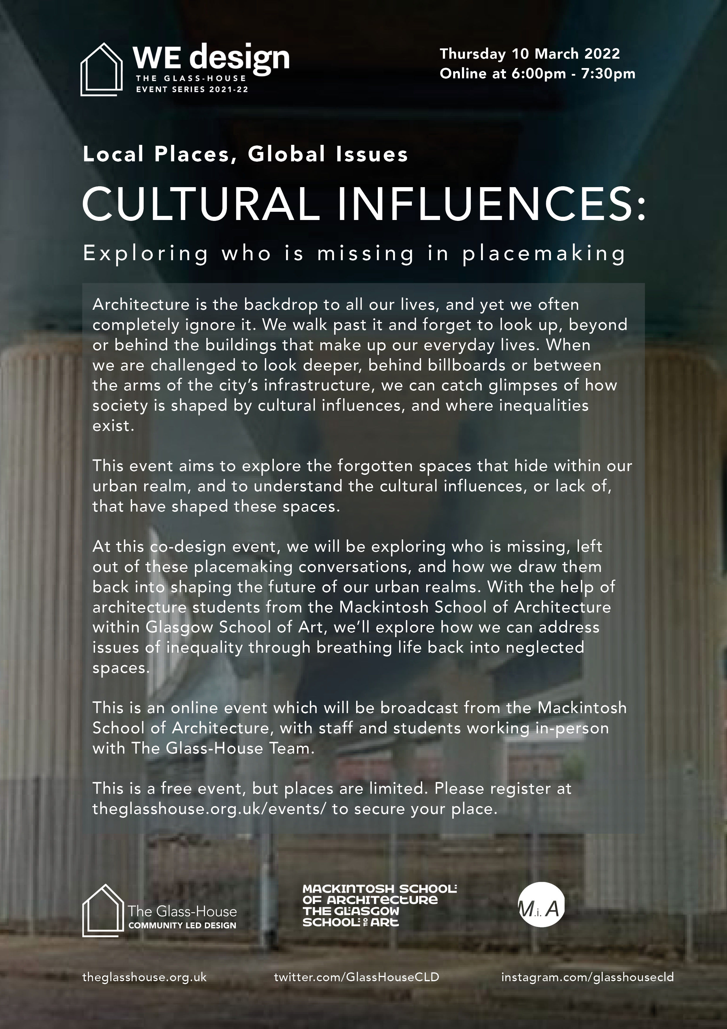 Cultural Influences: Exploring who is missing in placemaking?Deakin, Isabel and Webster, Miranda (2022) Cultural Influences: Exploring who is missing in placemaking? In: Local Places, Global Issues: Reflections on the 2021/22 hybrid event series. The Glass-House, pp. 22-27. |