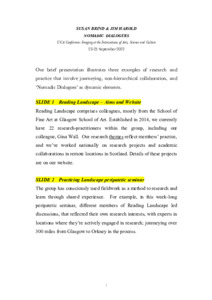 Sensing the storied landscape: taste, touch and smell-scapesWall, Gina and Morris, Gabriella (2022) Sensing the storied landscape: taste, touch and smell-scapes. In: Sensing the storied landscape: taste, touch and smell-scapes, Glasgow School of Art Highlands and Islands campus. |