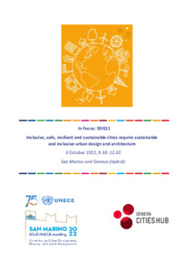 In Focus: SDG11. Inclusive, safe, resilient and sustainable cities require sustainable and inclusive urban design and architectureEvans, Brian (2022) In Focus: SDG11. Inclusive, safe, resilient and sustainable cities require sustainable and inclusive urban design and architecture. In: SDG 11 workshop, Committee for Urban Development, Housing and Land Management, UNECE, San Marino, San Marino and online. |