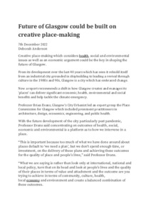 The future of Glasgow could be built on creative place-makingAnderson, Deborah and Evans, Brian (2022) The future of Glasgow could be built on creative place-making. The Herald Newspaper. ISSN 0965-9439 |