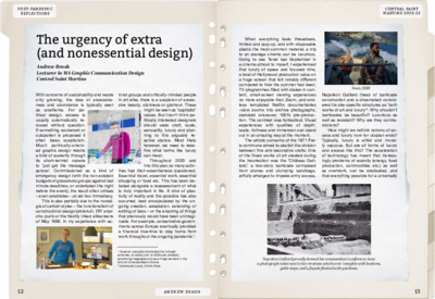 The urgency of extra (and nonessential design)Brash, Andrew (2022) The urgency of extra (and nonessential design). Post-Pandemic Reflections. |