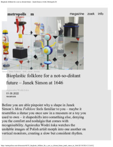 Bioplastic folklore for a not-so-distant future - Janek Simon at 1646Wodzinska, Agnieszka (2022) Bioplastic folklore for a not-so-distant future - Janek Simon at 1646. metropolis m (4). ISSN 0168-9053 |
