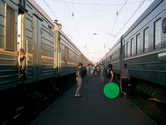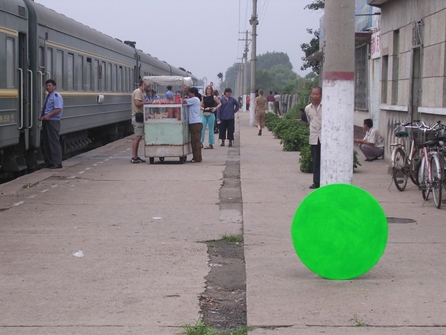 | Abstract: | Glasgow to Japan, 19 days, 456 hours, 11 time zones, 11 borders, 7 trains, one boat, a green dot. Commissioned by Crossovers UK as part of Japan's 2005 Aichi World Expo. Via was part of the group exhibition Crossovers, showing at the Toyota Museum of Art, Japan. Funded by Crossovers UK, The Hope Scott Trust and The Scottish Arts Council, the artwork involved the recording of a green dot's movement on a 6400mile journey by land, from Glasgow Central to Toyota City. The route crossed Europe, Russia, Mongolia, China and Japan. Throughout the journey the green dot was photographed at each stationary point, creating a photo and video diary, which was projected in the museum throughout the period of the exhibition. "Via’ began as an exploration of the possibility of making a drawing that connected two places on either side of the globe—Glasgow to Toyota. The impetus was to create an alternative definition of the map by drawing a dotted line that would cross 11 borders without adhering to predetermined frontiers. An enquiry into methods of measuring distance - not by numbers and facts but physically, with the effort of moving through places, languages, climates, politics and landscapes—became a journey through relativity. Scotland relative to England in relation to France, Belgium, Germany, Poland, Russia, Mongolia, China and finally Japan. ‘Via’, had its first UK showing in MAP Magazine #3 AUTUMN 2005 - AUGUST 2005 |