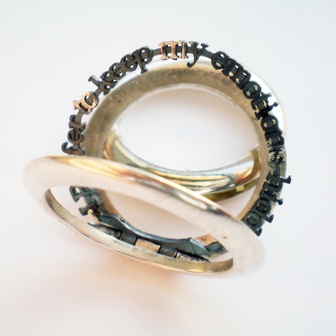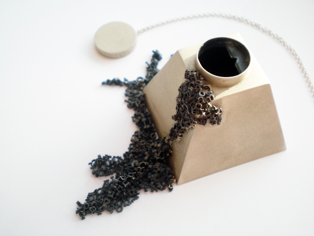 Using rapid prototyping and other digital techniques as well as pioneering thousand sprue casting techniques in work to create complex and intriguing work. Research in to creating narrative works that are sculptural as well as wearable that try to understand and relate objects, language and the person. 20 items (both wearable and artefact) using these two joined research strands were created for Solo Exhibition. Winning the prestigious Goldsmiths Best New Design in 2010.
