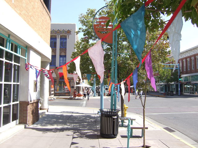 The bunting was also selected for the exhibition ‘Harsh Lines and Spongey Surfaces’ as part of Hackney Wicked Festival in 2010, and was later displayed at the 'Wasteland Twinning' Network Forum (21-23 September 2012) at ZK/U – Zentrum für Kunst und Urbanistik, Berlin - an exploration of urban wastelands and networked transdisciplinary practice. Most recently the bunting was used at Downtown Block Party, Albuquerque, New Mexico. (2012)