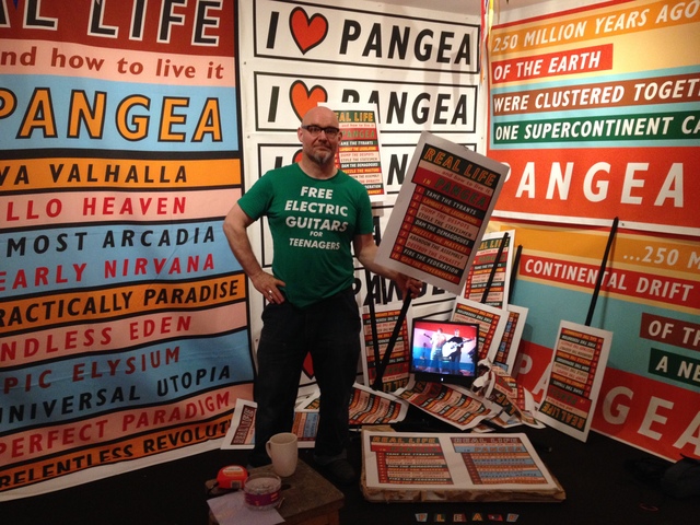| Abstract: | A group exhibition which brings together 8 contemporary scottish artists to explore scottish identity and culture during the referendum period. My Contribution: "Real Life and How to Live it in Pangea. A large scale installation with video, free posters and postcards articulating the idea where the supercontinent Pangea (250 million years ago) and Pangea Ultima (in 250 million years time) stand for periods of Global hope and continuity exploring the idea that that the current stormy world situation is a mere blip in Geological time. FEATURING WORK BY - JOHN AYSCOUGH, RABIYA CHOUDHRY, RACHEL MACLEAN, STUART MURRAY, ORTONANDON, ROSS SINCLAIR Ross Sinclair’s work, which often uses a multitude of materials and methods associated with advertising including posters, billboards, slogan T-shirts and neon signs, will feature not only in the gallery on Market Street but also in other venues throughout Ullapool. This installation is to be shown in Scotland for the first time during this show, it was last exhibited in Wales twenty years ago. Rachel Maclean’s short film The Lion and the Unicorn is not to be missed, in her trademark style Maclean transforms herself using costumes, makeup, and digital retouching. The Lion and the Unicorn presents a compelling discussion on Scottish identity touching on nationalism, trade and finance, natural resources and politics. A series of prints are presented alongside the film, further exploring themes of Scottish identity in Maclean’s trademark maximalistic style. “A large section of the gallery has been occupied by the colourful and provocative presence of Ross Sinclair. His work has long delved into the ways in which art and politics interconnect, and it is fantastic opportunity to experience Real Life and How to Live It: Pangea. “ Susan Christie |