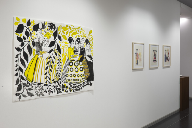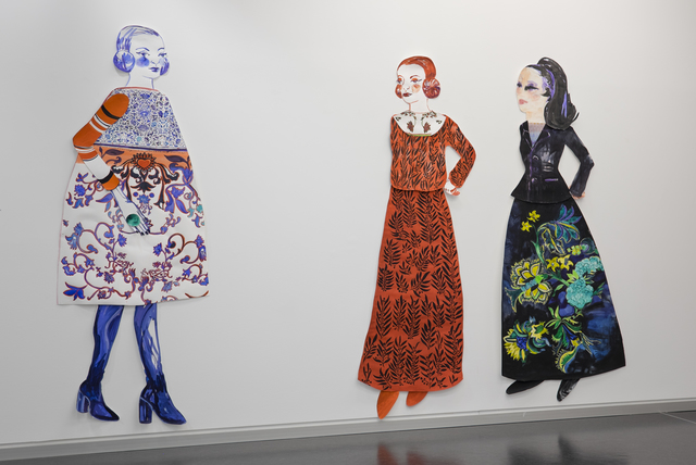 | Abstract: | An exhibition of the work of Berlin based Barbara Eitels work and mine, curated by the Frankfurt based artist and curator Jörg Ahrnt, held in Galleri ArteGiani in Frankfurt Germany. Visually the premise of this exhibition was a challenge, it was a bold juxtaposition to put together works by different artists that all consist of large areas of ornaments. The immediate impression was interestingly overwhelming. Eitels work and mine overlap in scope, but there are also fundamental differences, this exhibition sought to highlight and define these. For this exhibition I presented some of my most recent research. In the last couple of years my interest in studying and referencing all kinds of expensive elaborate, and ornamental objects has focused on high fashion and haute couture. Looking at the haute couture work of fashion designers such as Dolce and Gabana, Alexander McQueen and Dries Van Noten who produce garments that are comparable to Persian carpets or Chinese vases in their elaborateness and their costliness has allowed me to introduce human figures into my paintings, and with that a narrative element . In this body of work I am mainly exploring how it is visually and practically possible to combine the intense optical values of ornament whilst at the same time beginning to deal with narrative. Some of the characters that I have depicted in this exhibition are based on actual persons, and some are loosely based on observations, particularly at art events such as Frieze art fair and various gallery openings. In this work I am beginning to draw parallels between paintings as status symbols, clothes, jewelry and other objects as such. There is of course something paradoxical about the cynical implications and the exuberant visual expression in this project – this paradox is an important part of the questions this research seeks to address. |