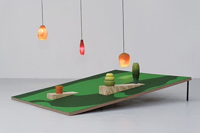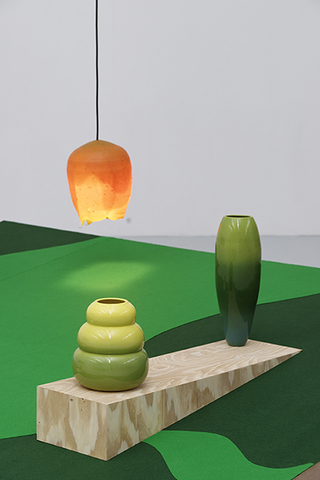 Laura Aldridge’s practice is deeply engaged in a dialogue about craft and contemporary art, creative processes, material experimentation and collaboration. She creates performative environments or in her own words “expanded collages” in which she sets up a playful assemblage of materials, processes and textures that harbour sensory associations. She strives to discuss and emphasize different strategies of making and reception through particular choices in reference to materials, processes and installation. Playing with a range of materials and incorporating both craft and sculptural practices, her pieces often situate the body in a myriad of ways; through the viewer’s physical interactions with the environment and through a constant sense of tactile engagement. This is evoked both by the evidence of hand made processes and ultimately the bodily responses her works provoke.