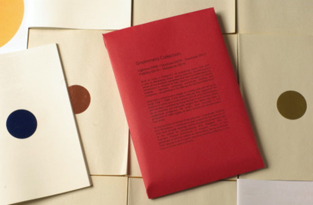 Collected Gnommero is a series of five thematic pamphlets independently published in Glasgow between 2008 – 2015. The pamphlets provided space for artists and writers to respond to Italo Calvino’s thoughts on the literary qualities of lightness, quickness, exactitude, visibility, multiplicity and consistency (as published in Six Memos for the Next Millennium, 1988). Gnommero was also an economic experiment in independent publishing: the pamphlets were produced collectively by the contributors who shared production costs. The copies were then divided equally and distributed at launch events featuring performances and presentations by the contributors. The five Gnommero pamphlets, one for each memo (excluding ‘Consistency’), have been gathered into a red envelope of Collected Gnommero containing works by 54 contributors over Gnommero’s six-year lifespan. Gnommero was edited by Sarah Tripp with the artists Richard Taylor and Eona McCallum. Works in the Gnommero Collection are by: Giles Bailey, Ruth Barker, Becky Beasley, Anca Benera, Tom Betteridge, Nathalie de Briey, Kimberley Bright, Jenny Brownrigg, Maria Bojanowska, Barry Burns, Neil Davidson, Rachael Disbury, Rowena Easton, Laura Edbrook, Kathryn Elkin, Stuart Fallon, Kate Grenyer, Lauren Hall, Jane Hartshorn, Jamie Hogarth, Simone Hutchinson, Ben Knight, Mhari Lafferty, Chin Li, Lila Matsumoto, Eona McCallum, Conal McStravick, Giuseppe Mistretta, Charlotte Morgan, Kate Morrell, Aniara Omann, Steven Paige, Jessica Potter, Darren Rhymes, Anthony Schrag, Laura Simpson, Carrie Skinner, Louise Shelley, Katherine Sowerby, Emily Speed, Patrick Staff, Catherine Street, Richard Taylor, Iris Tendink, Cara Tolmie, Sarah Tripp, Tom Varley, Chris Walker, Thom Walker, Daniella Watson, Lauren Wells, Rebecca Wilcox, George Ziffo. |