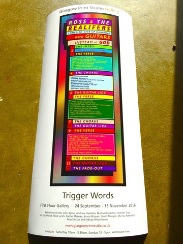 This is a new print commissioned and editions by Glasgow Print Studio to accompany the exhibition 'Trigger Words at Glasgow Print Studio'. This print was produced in 3 sizes, small, medium and large challenging the sense of the 'artwork' being a unique and valuable investment commodity.