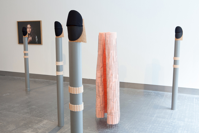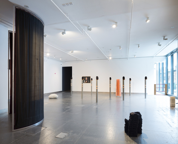 'Hosts and Visitors’ was a two person exhibition in The Glasgow School of Art’s Reid Gallery showcasing newly commissioned work by Birthe Jorgensen and Sogol Mabadi. Often in two person exhibitions, the curator or organisation as the host brings two practices together who may not necessarily know each other. ‘Hosts and Visitors’ was different as there has been a long period of preparation, in getting to know each other’s work and processes which included the two artists and curator. ‘A Year-Long Conversation’ (2015) took place between the artists and the curator, Jenny Brownrigg, who introduced them. The artists met each month over a year, in order to see what the connections and disparities were in their work and processes. They invited Jenny Brownrigg at key points to record their process through writing and feedback, in particular noticing their key words or 'anchors' that they returned to in order to describe their own practice. This resulted in a presentation as an event at 1 Royal Terrace (2015) as part of Birthe Jorgensen’s solo exhibition there. The proposed exhibition ‘Hosts and Visitors’ was the opportunity for these artists to consolidate on their ‘Year-Long Conversation’ and push the boundaries of their respective practices. ‘Hosts and Visitors’ took as its focus and inspiration the subject of diaspora and migration. This theme came out of the artists’ discussions on language and identity and how their art practices creatively engage with it. Each of the artists was born in another country – Jorgensen is Danish and Mabadi was born in Tehran. Both artists also have keen interest in performance, both individual and collaborative; and the act of making. Over the ‘Yearlong Conversation’ (2015) it became apparent that Jorgensen, who had a very collaborative practice, wished to return to the private act of making; whilst Mabadi, who had a very private practice of one-to-one performances and making, wished to become more collaborative in her approach. This encouraged the sub-themes of private / public and outside/ inside or outsider/insider for their proposed GSA project. The artists shared a studio at Glasgow Sculpture Studios for two months in the run up to the exhibition. Brownrigg also asked them to reflect on the now private nature of the Mackintosh Museum, closed for restoration, and the public Reid Gallery, as a mirror to the directions they were moving on within the trajectories of their practice. For their individual offerings for ‘Hosts and Visitors’, Birthe Jorgensen made a series of wooden carvings of partially painted female figures inspired by references from museum artefacts from all over the world. 'Good Old Light' (2016) was a sculptural work incorporating two large velvet curtains that were custom made for “the Mack” lecture theatre in the 1950s’ which showed the trace of decades of exposure to the light which poured through windows onto their now brittle silk lining invoking the ghost image of a window. Jorgensen saw this piece as an archive of light. 'From rage to grief and back again' (2016) was a second site-specific installation by Jorgensen in the Reid Gallery. Thick shards of glass pierced the skin of the gallery wall. Facing the street, this work when viewed from outside, interrupted the sombre geometry of the Reid building’s exterior surface. The sun’s rays at particular points of the day, bounced off the mirror shards and create pinpoints of reflected light inside the Mackintosh’s studios. Mabadi produced a series of ‘rest’ chairs made out of shoulder pads and knitting needles, bra straps and other feminine signifiers. She also made a series of ‘anxiety tools’, using materials that for her are embedded with a particular meaning. On the public preview night, Mabadi worked with a team of five student performers from Royal Conservatoire and The Glasgow School of Art. A development from her ‘Home Visits’, a sequence of one-to-one performances that Mabadi made in people’s lounges, Mabadi worked with the students and chose the hosts, for the students to visit at their homes. This performative action mirrored the public and private dynamics the artists wish to highlight in this project. Jorgensen and Mabadi curated the events programme accompanying the exhibition. Professor Alison Phipps (Professor of Languages and Intercultural Studies, and Co-Convener of Glasgow Refugee, Asylum and Migration Network (GRAMNET)) gave a public lecture entitled: ‘We Refugees’: The Languaging of Breath against Death or ‘Funtunfunefu Denkyemfunefu’. This lecture addressed themes of migration, otherness and identity which are fundamental in both artists work. There was also a screening of 'The Silence' ('Sokout'), 1998 directed by Mohsen Makhmalbaf (Iran). The film was introduced by Dr Jim Harold. |