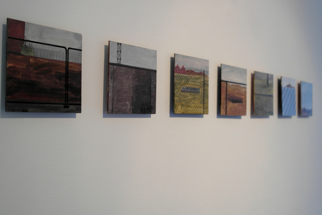 | Abstract: | Over / Under / Cover / Repeat is a new body of work created for a showcase at the Bowery. It forms part of ongoing studio investigations into the qualities of everyday barrier materials. From solid hoardings, to chain-link wires and to plastic weaves, diverse material surfaces are so often part of everyday urban spaces, but are easily overlooked. Beginning with representational reflections of repeated patterns and non-descript urban sites, the subjects are gradually distilled to reveal what I see as their abstracted, painterly qualities. Over / Under / Cover / Repeat reflects a desire to continually test out materials and to ‘think through’ ideas using painting processes. Of interest to me is the notion that when these diverse works are brought together, shared visual languages are pushed to the fore within a vibrant, abstracted and fragmented aesthetic archive. At the core of what I create in studio is the notion of ‘thinking through practice.’ My concerns as a painter do not specifically relate to abstracted aesthetics, or simply to re-presenting patterns. Rather, I am consistently driven by a desire to try and think about that which interests me using painting as a methodological tool. In essence, as an artist, I always want to see what something looks like, and how it can be thought about, as a painting. _______ Over / Under / Cover / Repeat is the culmination of a 2 year practice-based research trajectory. Built upon investigations relating to how contemporary painting practices can be used to to explore visual relationships and interactions with physical barrier materials. The exhibition showcases the breadth of personal studio painting processes, developed over a 2 year period, which have been tested out at group exhibitions over 2017. O/U/C/R locates these distinct visual practices as interconnected personal research activities. The resulting body of work is positioned as a ‘thinking-through’ process, rather than simply an activity of making paintings of subjects, or creating objects. Here, the works point toward questioning the ways in which the selected subject can be considered, challenged, used and re-imagined through the activity of painting and by using painting practice as a methodological tool. The Bowery Gallery in Leeds is a venue of considerable standing, having showcased the work of national and international artists over the last 10 years. |