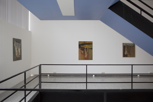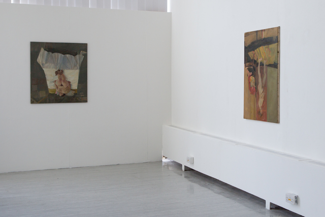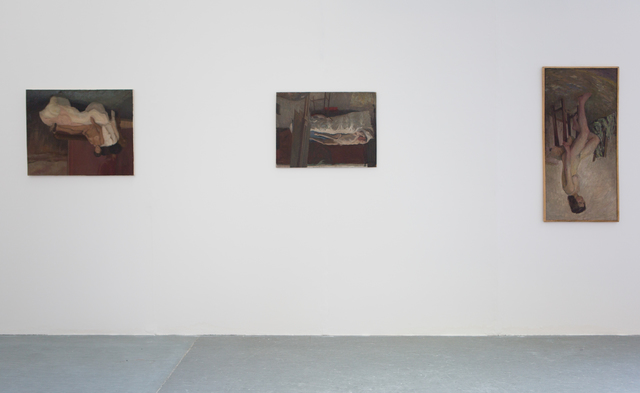 | Abstract: | For a solo commission, as part of the 'Look Again' 2017 festival in Aberdeen, we proposed an intervention to make an exhibition from the Robert Gordon University collection: to re-hang selected life paintings; re-interpreting the tradition of the nude in a provocative installation. In the resulting installation, 'Re-Hang', in Gray's School of Art, all the selected life paintings were hung upside-down. This inversion of the nudes objectified them in a different way, making the viewer indeed look again. The images potentially become more sexual, violent, confrontational, unnerving, abstract... Points of contact in the paintings - eg. between body parts and furniture or fabric - become sites of tension; hands grabbing on for dear life. Suspended in limbo, fighting against gravity, held before the fall. We're also interested in the viewer's vantage point - especially emphasised in such a specific hang, in relation to a gallery space, situated on two floors, around a stairwell. [We have worked with inverted images (of bodies, body parts) on a number of occasions including, 'Godforsaken Hole / Free Hand' (1999, double black & white video installation on inverted 3x4m screens + amplified sound, looped) made for the Beckett Festival at the Barbican & exhibited in the Curve Gallery. Two inverted projection screens were bolted to the ceiling, turning the entire gallery on its head. The videos were shot in infra-red: one showing an upside down mouth giving instructions and directions; the other showing an inverted hand blindly feeling its way around a dark room]. |