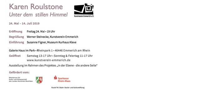 Roulstone, Karen (2019) In der stillen Himmel/Under a Quiet Sky, In der Ebene. Emmerich, Germany, 24th May - 14th July 2019 [Show/Exhibition]