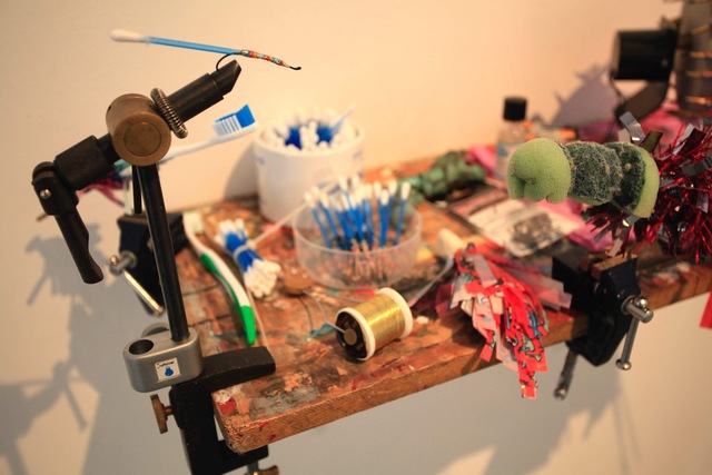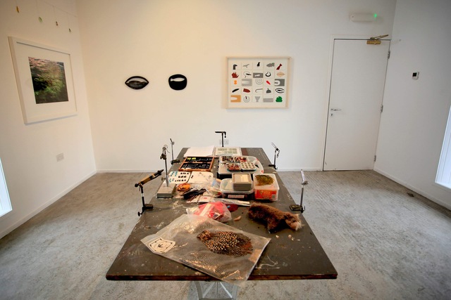 | Abstract: | Zulu on the Machair, at Taigh Chearsabhagh Museum and Arts Centre North Uist, brought together a number of British artists who have a shared passion for fly-fishing. ‘Zulu on the Machair’ takes its name from the small black Zulu hand-tied fly popular amongst anglers who fish the lochs and rivers of the Outer Hebrides. Co-curated by Professor Keith McIntyre, former Head of Arts at Northumbria University and Andy Mackinnon, Arts Manager Taigh Chearsabhagh Museum and Arts Centre and UistFilm. Workshops, demonstrations, talks, and film took place throughout March and April bringing together local fly tiers and fishers with artworks. The works made specially for the exhibition 'Triggers', combines my interests in using the found and detritus for the making of art alongside observations of being in the landscape while fishing and witnessing the growing residues of human contact on nature come into being. The Moray cod lured to golf balls; the tragic sea turtles attracted to polythene bags; leatherbacks listed on the IUCN’s endangered Red List that appear to mistake floating plastic in the form of bags or sheets for jellyfish and then eat them; cotton bud sticks and baby wipes noted as among the top ten marine polluters found during coastal clean-ups ; the estimated 46,000 pieces of marine litter floating on every square mile of ocean. This work attempts to engage with the tragic irony of triggers, their beauty and their lure. Materials in the hand of the artist, fly tyer, or rod builder can be careful and crafted; in triggers, detritus is gathered and made using the tiers’ techniques to create and present these new, more sinister species of lures and flies. The inclusion of one of my own hand built yomogi fly rods aims to show something of this attempt at an integrated experience of fly, rod, fishing, making, craft and art. Using blanks hand spun by craftsman Kazutomo Ijuin, unlike more contemporary fast action rods, the yomogi fibre glass blank has a parabolic action, allowing a build that is closer to cane, and an experience of the moment - the cast and the catch - that is slower and more visceral. |