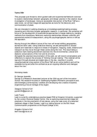 Jaramillo, George Steve and Fusco, Leah (2018) Tynnu Dŵr. In: Desire Lines, Dawdles and Drifts: Walking Together as Research - RGS Conference, 28-30 August 2018, Cardiff, Wales.
