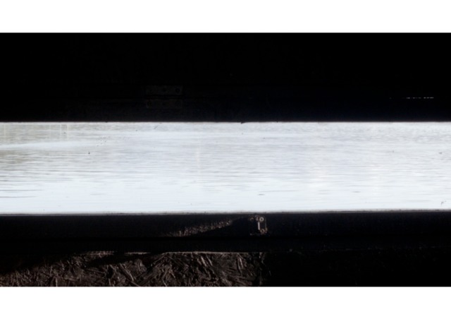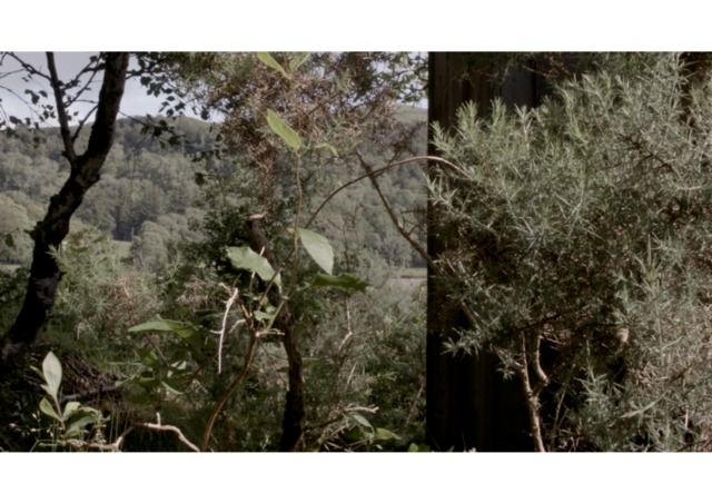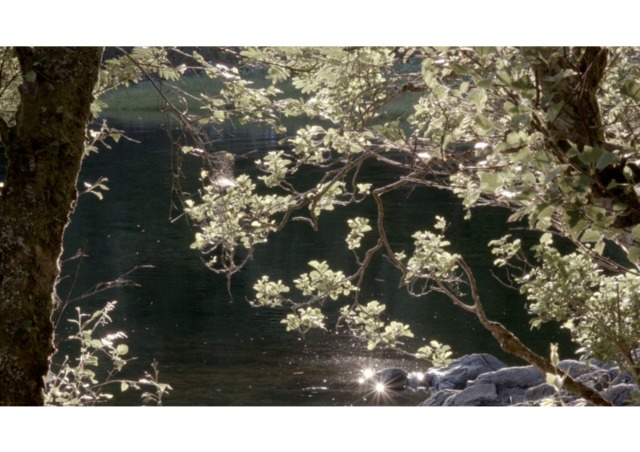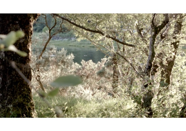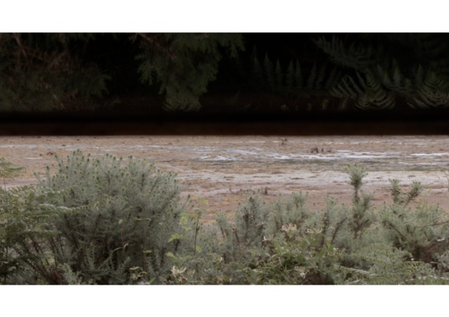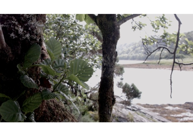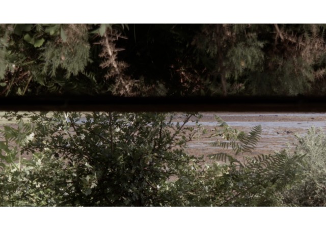 "The Hide": a film that records the passing of time in a wildlife hide on the west coast of Scotland. The hide allows the viewer to look upon the landscape through a long, panoramic viewing aperture. It looks out onto the land and water in a location where time is governed by the inexorable regularity of the tide. It’s mid-summer. The wind rifles through leaves, insects hover, and the camera examines the space viewed from the hide, but also of the hide itself. It’s a place that is almost a pause in the landscape, a place to view a pause in the landscape. Nothing happens. We just watch and wait.