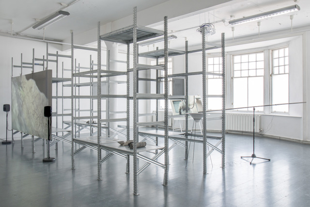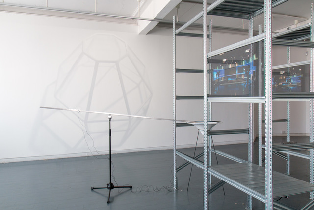 A multimedia installation that contained moving image works, sculpture, photographic images, kinetic sculpture and sound.