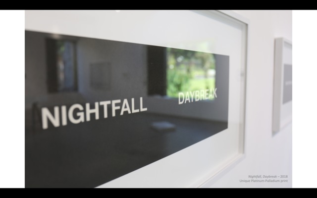 Other works include "A darkening" (Super 16mm digital film) 2018, "Remoteness is a medium of clarification" (unique platinum print) 2018, "Nightfall Daybreak" (unique platinum print), "Duration 1&2" (silverpoint/oil paint on board) 2012