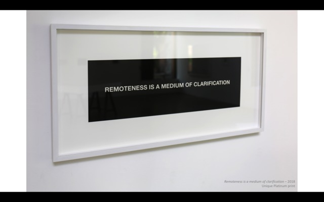 Remoteness is a Medium of Clarification" was also exhibited at SHARING A VIEW: CONTEMPORARY ART FROM GLASGOW, Luxun Academy of Fine Arts 23 Oct 2020 - 7 Nov 2020 touring to" The Academy of Arts & Design, Tsinghua University, Beijing, 20th Nov – 4th Dec 2020 Guangzhou Academy of Fine Arts, Guangzhou, 29th Dec 2020 - 28th Jan 2021