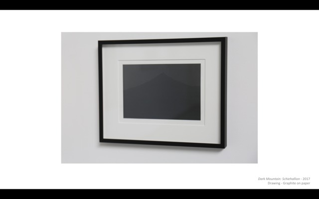 In addition to my "First Light, Last Light" photographic images, I have also made drawings that seek to explore the limits of perception in viewing (and feeling) land in darkness. I have created a series of "Dark Mountain" drawings made with powdered graphite which record the way it's almost always possible to see and perceive something of the land even on the darkest of nights. When night walking (with or without a torch) the senses are stripped back, and the experiences of place seem to be made made more physical. In the un-illuminated night, the eyes also adjust, and one becomes more able to trust the body in relation to space. It's these experiences I wish to convey, and to consider the potential of their translation as metaphor.