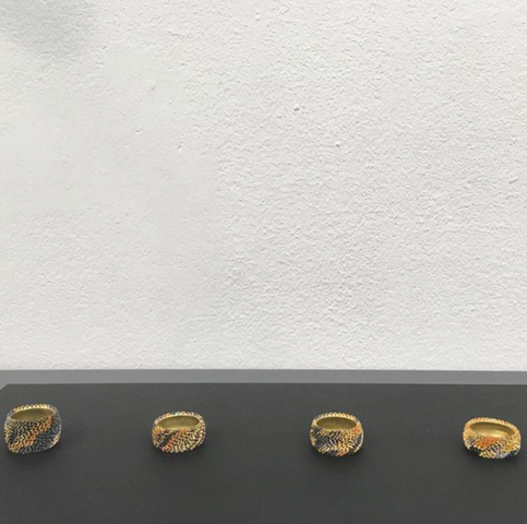 A series of new rings, made for COLLECT: The International Art Fair for Contemporary Objects at The Saatchi Gallery (Subsequently exhibited as part of a larger body of work at FRAME: Eleven Selected Galleries at Handwerk & Design 2019 (Munich Jewellery Week) The artefacts are part of my ongoing practice based research exploring visual illusion and optical effects within jewellery. Experimentation is key to the way that I develop new ideas and although there is a mathematical precision to the way I work there is an organic flow and spontaneity within the surfaces I am creating, this is important for me in developing unique pieces of jewellery. I made this group of rings following years of tests and research using bi-metals and multiple alloys of gold, silver, platinum and palladium. My aim is to create jewellery that engages both the wearer and viewer through playful and innovative use of these traditional materials. In keeping with previous ‘Lenticular’ pieces, the pattern within each ring changes colour. The surfaces, created using thousands of individual elements, come alive through the slightest of hand movements. (see movie and images) COLLECT: The International Art Fair for Contemporary Objects at The Saatchi Gallery - 27 February to 3 March 2019 - Represented by The Bishopsland Educational Trust ‘The growing recognition of how craft is the foundation for providing the skill and intellectual rigour behind new and contemporary work is to be celebrated. Collect showcases remarkable work by living, multi-disciplinary artists’ - Isobel Dennis (Fair director, previously at The Design Museum and prior to that, Group Director of New Designers for 14 years) Collect is the only gallery-presented art fair dedicated to modern craft and design, and provides an opportunity to discover and invest in exceptional work produced in the last five years by living artists, much of which is made exclusively for the Fair. It occupied the Saatchi Gallery for four days with 45 galleries - the largest number of participating galleries in the fair's history - selected by an independent panel of experts. FRAME: Eleven Selected Galleries at Handwerk & Design 2019 (Munich Jewellery Week) - 13 to 17 March 2019 Handwerksmesse Munich - Represented by Galerie Marzee Galerie Marzee was founded in 1978 as a gallery for contemporary jewellery, and has since become one of the principal promoters of contemporary jewellery and silverware. Since 1995 the gallery has been housed in a former granary on Nijmegen’s waterfront. With 850 square meters of exhibition space, Galerie Marzee is one of the largest galleries in the Netherlands, and the largest gallery for modern art jewellery in the world. Marie-José van den Hout (Owner - Galerie Marzee) is the creative mastermind behind FRAME. Schmuck, Exempla, Talente and Meister Der Moderne, the other special shows at Handwerk & Design were already well-established within the Handwerksmesse when she started Frame in 2009. She wanted to add another dimension to these exhibitions and together with Wolfgang Lösche, director of Schmuck and then Dieter Dohr, the director of the Handwerksmesse she initiated Frame for the first time |