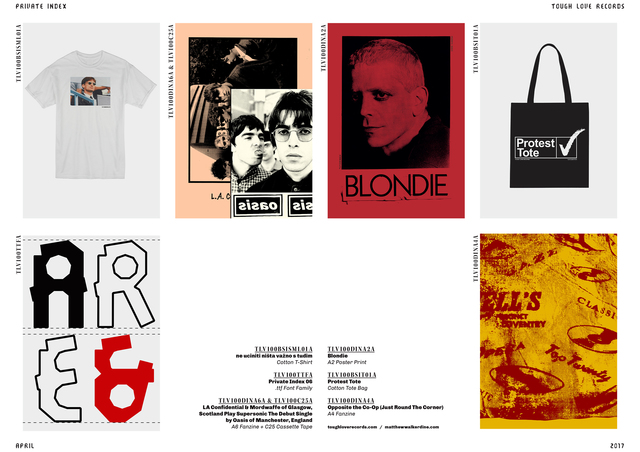 | Abstract: | “To mark the hundredth release on Tough Love, the TLV100 catalogue number was gifted not to a landmark artist but to Glaswegian-based designer and Good Press Gallery owner, Matthew Walkerdine. Given the one hundred releases span a 12 year period, the only consistent thread has been the interests of the person who runs the label, for better or worse. To reflect this, Walkerdine took the title Private Index as a banner under which a series of multi-format items could exist - print, sound, textile and type - each with their own unique catalogue number. Like a conventional index, the concept is for Private Index to somehow function as sign or measure of the label.” Considering the dynamic of a record label, it’s production, the effect of influence and the manifestation of its operations, and firmly positioned in the record label industry. Collaborative in the first instance the project utilised conversational research methodology tracking influence and motivation, the back catalogue of a record label and its dynamics were explored through the subject of its founder. The project was developed individually to produce limited edition outputs using the language of graphic design. Low-cost production methods and evoking the amateur or ‘fan’ explored the links between music, art and ephemera, fandom and iconography. |