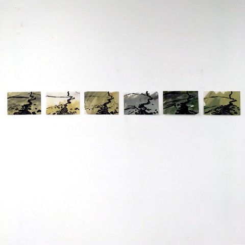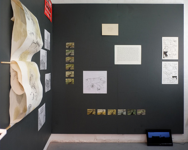 | Abstract: | Path(s), Kinder Scout, are two pieces of work developed as part of the This Land is Our Land research project, curated by Stephen Walter and Dr Simon Woolham. The research project, built around the mass trespass on Kinder Scout in the Peak District in 1932, was connected to potential current alterations to 'free' movement between spaces in light of Brexit. Exhibition Text: As a starting point, artists Stephen Walter and Simon Woolham organised a walk, re-tracing a famous mass trespass to the summit of Kinder Scout in the Peak District. The walk, on 24 April 1932, was a notable act of wilful trespass by ramblers. It was undertaken to highlight the fact that walkers in England and Wales were denied access to areas of open country. The artists have invited a number of contemporary artists, with a diversity of practices, to re-explore the meaning of place and myth in the act of pilgrimage whilst mirroring the socio-politic absurdity of today. A number of the artists will re-trace the history of the Kinder Scout walk but this time in the context of an anti-Brexit walk. The walk will be on 29 March 2019, the date the UK is scheduled to leave the EU, and will also act as an open invitation for those wanting to join in on the walk/demonstration. In the aftermath of the event, the artists will make work in response and reference to this particular walk, or another project - inviting an overtly political stance, questioning both the effects of leaving the EU and what the term THIS LAND IS OUR LAND signifies today. The exhibition will happen at PAPER in Manchester alongside the alternative exhibition INTER-SECTION at Market Gallery in Huddersfield, a conversation between two sites. At Market Gallery there will be a presentation of artworks curated around artist-led initiatives and at PAPER the exhibition will present notes, drawings, and paper ephemera. The works and ephemera in the exhibition combine photography and performance, drawing and sculpture, digital and analogue processes. The works are united, creating a meeting point, a conversation around the themes and premise of THIS LAND IS OUR LAND. ______ My own practice-based research work is closely connected to the ways in which spaces and places are negotiated. Recent works have been focused upon paths (Twice as Nice, 2018, PS Mirabel) and on fences as barriers and blockages in space (Grille, Patriothall, 2018). It is because of this ongoing research that I was invited by Dr Simon Woolham (Exhibition Programmer at Paper Gallery) to develop new work for this project. In This Land is Our Land, I showed 2 new works, each titled Path(s), Kinder Scout. Having lived near to the Peak District in the past, I was familiar with the area and created works referencing the appearance of the paths in the area, derived from personal photographs of walks which I'd regularly undertaken. The openness of the area is at the heart of these works which do not feature fences or walls, or means by which movement would be restricted. What the works do reference is the activity of repeating similar lines of movement, and in this way they clearly are connected to previous endeavours which foreground repetitive mark-making activities as a means by which to bring attention to an aspect of a spatialisation process. The same paths were walked again and again, not though using footsteps on the 'free' space of Kinder Scout, but through the application of paint on a prepared surface. Each individual postcard sized work was employed as the source material for the next in an iterative, repetitive process. 2 sets of six paintings were made, with each collection being exhibited as a single work under the title Path(s), Kinder Scout. Here, painting was employed as personal methodological tool, through which new / improved knowledge was gained about a specific geographical location. The activity of painting allowed for the paths to be better understood through the re-presentation process itself. The development of these works was therefore a process by which an action of continually tracing a line of movement, again and again, and having the freedom to do this, was shown to emerge as an important aspect of engaging with space and place in this contemporary era. _______ PAPER is an artist-led gallery based in Manchester and represents a range of emerging and mid-career artists whose practice is based around the medium of paper. This ranges from drawing, painting, and printmaking to artist's books, video, and performance. The gallery opened in August 2012 and has a regular programme of exhibitions, presenting the work of gallery artists as well as providing a platform for outside curatorial projects. In 2013 PAPER instigated an Artist-in-Residence programme, Exploring PAPER, and in 2014 a mentoring scheme for artists based in the North-West of England, funded by Arts Council England. Directed by David Hancock, working alongside Sara Jaspan, Lubna Ali, Mike Burrows, Sarah Boulter, Andrea Cotton, and Simon Woolham; PAPER has participated in five editions of The Manchester Contemporary (UK), as well as Art Rotterdam 2016, Art Projects at London Art Fair, Art on Paper at BOZAR (Brussels), Art Copenhagen, Sluice Art Fair (London), Supermarket (Stockholm), Project Space Collective at the Affordable Art Fair 2014 (Battersea), Exchange Rates (New York). |