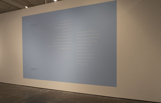| Additional Information: | 'The Dead Zone' – Installation comprises three elements: ‘Looking South – Facing North II’, a painted area of wall and vinyl text; 3 x Digital Photographic prints from within the Cyprus Buffer Zone, also known as the ‘Dead Zone’; and Letter works, a selection of letters specifically relating to Cyprus, extracted from a larger series of works known as ‘Coffee Letters’. ‘Looking South–Facing North II’ was previously presented in the form of a publicly sited poster work (2017) located in North and South Nicosia. Here it is reinterpreted and presented for a gallery context and to provide a backdrop against which the two other elements of the installation can be interpreted. The texts are drawn from fieldwork observations made in South Cyprus and the Turkish Republic of North Cyprus over a number of visits. Where the texts overlap, the observations have been made inside the UN de-militarized Buffer Zone: where access has been negotiated in territory not accessible to either Southern or Northern Cypriots. The photographs that comprise ‘Cyprus Buffer Zone series – The Dead Zone’ were taken inside the UN de-militarized Buffer Zone on the east side of Nicosia at a point where the ‘Dead Zone’ intersects a suburb called Kaimakli. The photographs were taken during fieldwork undertaken in November 2016. ‘Letter Works’ |