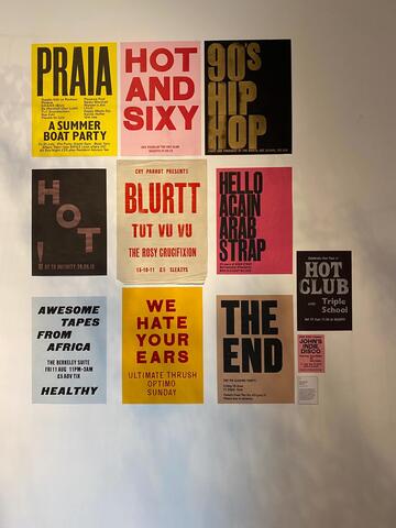 Pickstone, Edwin, Pitt, Oliver, Wake, Andrew and Andrew, Robertson (2021) Club Posters Produced in GSA Caseroom 2007–2018, Scottish Club Archive, Nightfever: Designing Club Culture, V&A Dundee. [Artefact]