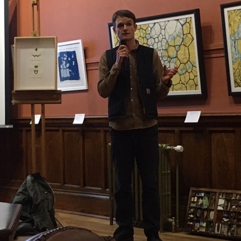 | Abstract: | Oak gall ink was made by combining oak galls from Rockingham forest with rust extracted from the Worlds largest dragline excavator named ‘Sundew’. The ink was then used to create a series of klecksographic prints, two of which were selected and framed within a 'paradox box' - normally used for zoological specimens. I responded to an open call to GSA staff and students from Glasgow Art Club and The Glasgow School of Art for an exhibition called ‘The Art of the Possible', coinciding with the COP26 Climate Change Summit. Work would be exhibited at Glasgow Art Club in an exhibition running from 29 Oct - 27 Nov 2021. Work needed to relate to any aspect of climate change, climate emergency, climate justice or sustainability - the exhibition featured work by both the Club’s artist membership and the art school’s students and staff. The exhibition functioned as both a physical showcase and also a digital online gallery. https://glasgowartclub.co.uk/exhibiton/sundew-2/ 'Sundew' (2021) was selected for the exhibition and subsequently won the 'Exhibit Auctions' prize presented by Natasha Raskin Sharp at the exhibition opening. As a prize winner I was then asked to speak about the work at an event at the gallery on 19 Nov with other exhibiting artists. |