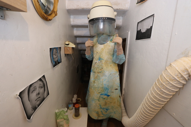 | Abstract: | A dreamlike product of the long lockdown, ‘The Cook, the Cupboard and Joan of Arc’ draws on the tableau vivant of early renaissance painting and the films of second wave feminist performance artists to create a commentary on the dislocation and absurdity of quarantined life. A figure in apron and helmet moves through a confined, artificial space: watched by an array of sculptures, and tattered, distorted film stills from Carl Theodor Dreyer’s Joan of Arc (1928), they carry out increasingly deranged parodies of domestic acts. The confined space and the repetition of the figures actions works to illustrate the new and absurd temporalities generated by the collapse of our everyday life. But ‘The cook, the cupboard and Joan of Arc’ also critiques the ordinary performance of those gendered, anthropocentric, forms of life, as the artificial ecology of the main setting is intermixed with shots of a mysterious bunker. Caught between the absent present, a future that has failed to come, and an inaccessible past, ‘The cook, the cupboard and Joan of Arc’ asks whether the collapse of old life-worlds imprisons us; or opens the way to transcendence. ‘The cook, the cupboard, and Joan of Arc' was screened as part of the Cutlog selection for the SSA annual Exhibition at the RSA galleries in Edinburgh.The Exhibition runs from 31 October – 23 November 2021. |