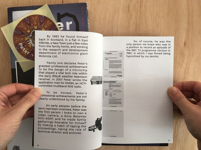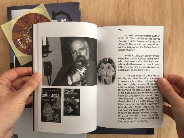Peter & nou (2018) is a publication which secures the bond between my videos Peter (2014) and nou (2018) while making a clear link between their narratives and the form and content of www.rabbitcottontoothcottonrabbit.com (2018-Present). The book is an experiment in adaptation which transports visual and textual narratives of the videos Peter and nou from moving image to the page, taking the formal and conceptual opportunities that the move brings to develop and thicken the worlds of Peter and nou.
