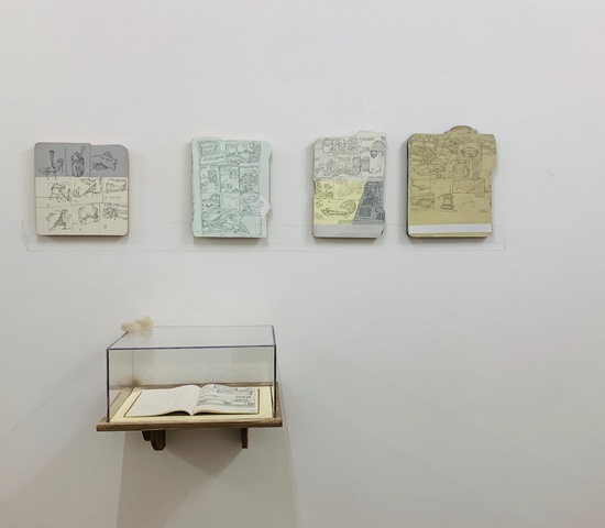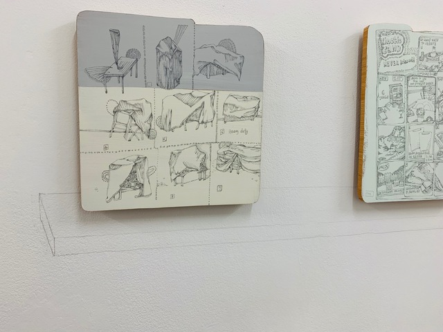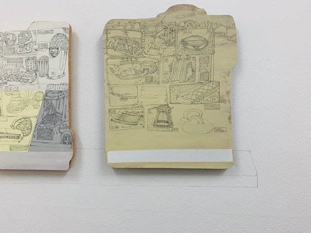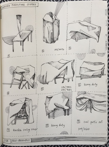 Plaguecation: Within a practice that already engages collage and drawing as a means to contextualise clutter and collection, the Argos catalogue drawings evolved as a way of keeping time. Shielding prior to lockdown and confined to the house without any recourse to the outside world beyond deliveries and online communications, drawing the ‘entire’ catalogue provided Mendelson with a seemingly endless project, tied to ailing, weakened forms of retail. It is early August and she is still home, safe, where things are fairly ordered but there is little space to make art. Mendelson’s most recent works take the form of installations that present as dirty archives - drawn and painted works positioned in tandem with objects, in which schemata are established via placement but what is being stored presents a problem of either cleanliness or possible collapse. An interest in the home as a site of possible overload has prevailed since her PhD connecting collage and hoarding in 2015. The Argos Catalogue, as a whole, presents seemingly endless choice via sameness and difference, speaking to both our desires and our processes of elimination - a rolodex of commerce as nauseating ferris wheel. The drawings are not an attempt to accurately describe what is on each page but to reflect the experience of its taxonomical modes of classification - an investigation of graphic novel-type encounters with spatial division to the languages of bargain and sales pitch. Although this turned out to be the last ever Argos Catalogue, Mendelson did not know this on commencing the project. She is as surprised as anyone to have spent the past weeks drawing chocolate fountains, paddling pools, soft furnishings, cat toys, kinetic sand and tv brackets. She did, however always expect to spend a lifetime drawing play-doh pretzels. Argos does not deliver to her area. ------ Real Time, a group exhibition of works observed from life by artists who employ a range of strategies to tweak the view. In this odd moment, the realities they speak of appear to embody a similar sense of shift, between perfunctory and less definable states of play. While some works propose a pictorial means of escape, others alert us to the curious and overlooked details of ordinary life revealed when the area of focus becomes small. The exhibition includes works in a variety of media that refer to aspects of the painterly process. All have been made in plain sight of their sources and involve significant time investment. This might be hours in the studio, or journeys undertaken – from rabbit-hole research routes through art and other histories, to real-life dérives – that are essential to their manufacture. Curated by Rebecca Geldard. Exhibiting artists: Neil Gall, Martin Gayford, Nicky Hirst, Lee Maelzer, Zoë Mendelson |
